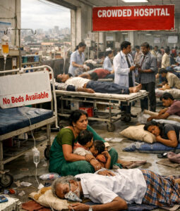 विशेष प्रतिनिधी : देशाची लोकसंख्या १४० कोटींचा टप्पा ओलांडल्यानंतर भारतातील आरोग्य यंत्रणेवरील ताण अधिक स्पष्टपणे समोर येऊ लागला आहे. सरकारी आणि खासगी रुग्णालयांमध्ये उपलब्ध खाटांची संख्या लोकसंख्येच्या प्रमाणात अपुरी असल्याचे विविध अहवालांतून अधोरेखित झाले आहे. केंद्र आणि राज्य सरकारांनी आरोग्य सुविधांचा विस्तार करण्याचे प्रयत्न सुरू ठेवले असले, तरी वाढत्या रुग्णसंख्येच्या तुलनेत ही वाढ अपुरी पडत असल्याचे चित्र आहे. परिणामी, शहरी तसेच ग्रामीण भागातील रुग्णांना वेळेवर उपचार मिळवताना अडचणींचा सामना करावा लागत आहे.